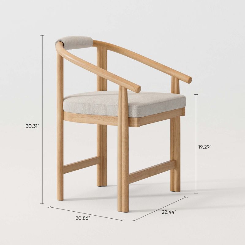 Meet the Alvara chair - designed for those cherished moments around the table. Crafted with rubberwood and 1.77-inch polyester cushion, it offers perfect support. The wraparound back provides cozy security while organic armrests make moving easy. Your ideal companion for family dinners and friendly gatherings.
