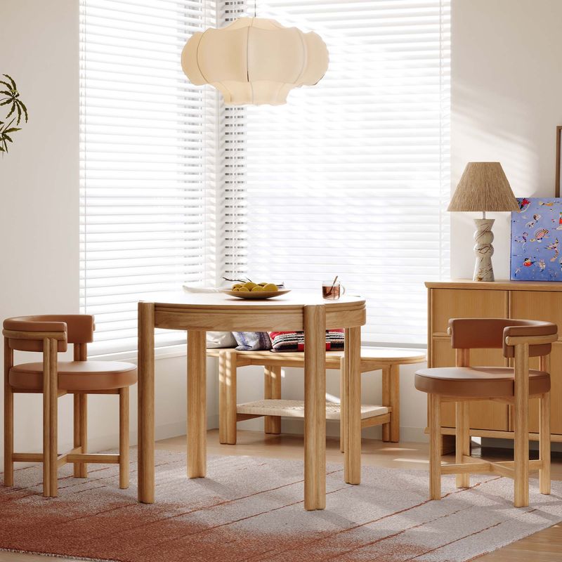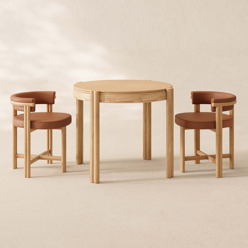 Meet the Alvara Dining Set — a perfect harmony of warmth and comfort. Crafted from solid rubberwood, the 39.7" round table pairs effortlessly with two ultra-suede chairs, inviting you to slow down and savor each moment. The soft curves, double-layer tabletop, and cushioned seats create a cozy corner made for shared meals, laughter, and quiet connection. Simple in form, rich in feeling — it’s dining, redefined.