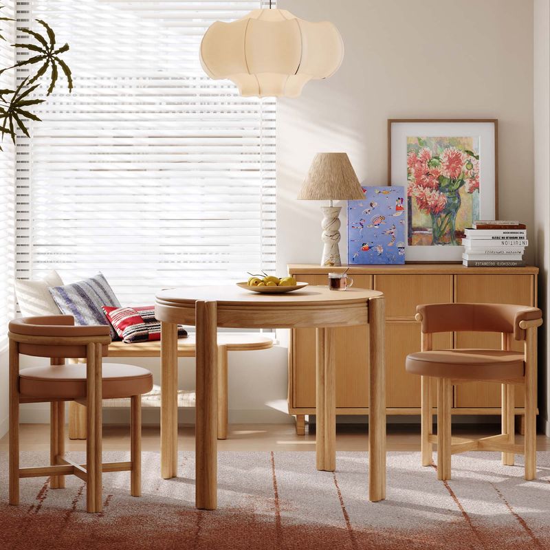 Crafted from solid rubberwood, the table and chairs bring lasting warmth and strength.Made of microfiber leather, the unique production process gives chair strong scratch resistance, wear resistance and easy cleaning properties.The rubber wood used in this product is sustainably sourced from trees that no longer produce latex.CPSIA-certified water-based finish, safe for family well-beingThe chair features TB117-certified materials, providing proven flame resistance for your peace of mind.Every piece of natural wood tells its own story, with unique color and texture, no two are alike