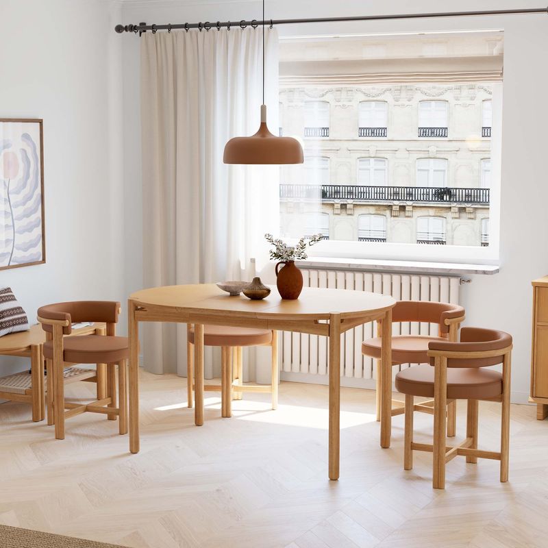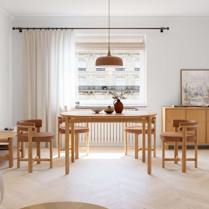 This extendable dining table is perfect for small spaces. Compact for everyday use, it can be easily extended by one person to accommodate more family or friends. From daily meals to weekend gatherings, it adapts effortlessly, making every inch of your home warm and practical.