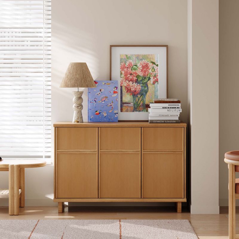 Crafted of rubberwood with rubberwood veneersThe rubberwood used in this product is sustainably sourced from trees that no longer produce latexCPSIA-certified water-based finish & EPA P2 Certified, delivering a safer, eco-conscious home for your family and our planetEvery piece of natural wood tells its own story, with unique color and texture, no two are alikeFlowing pastoral lines and a sculpted, lifted base compose a modern pastoral poemA dedicated spot for your dining nook, keeping tableware, books, and knick-knacks tidy and within reachSome assembly required (approximately 30 minutes)
