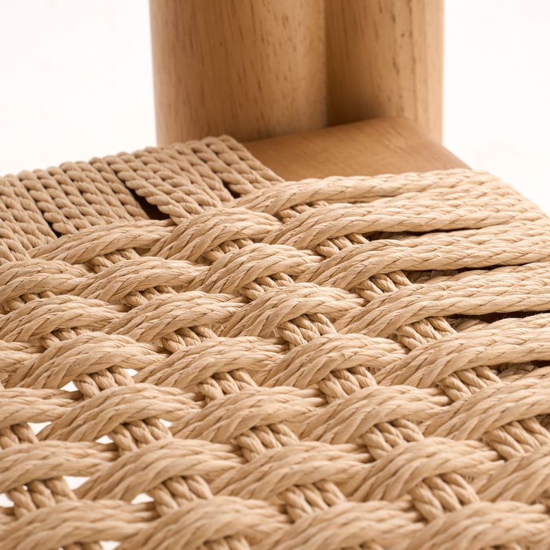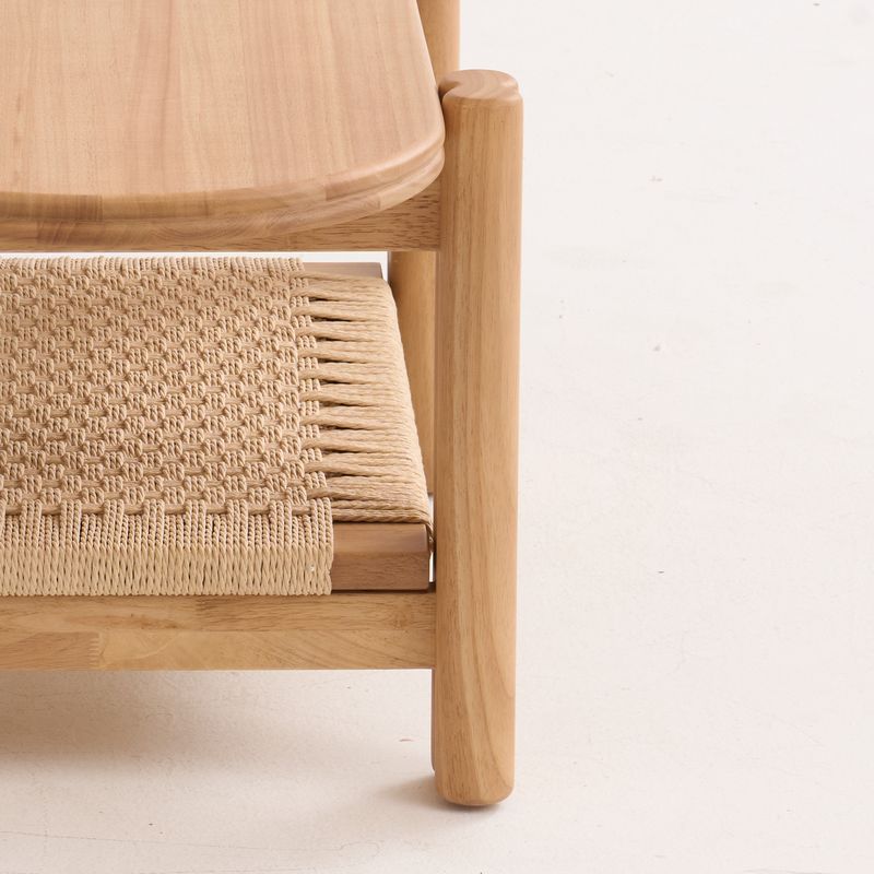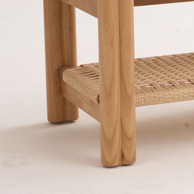 Crafted of rubber wood with rubber wood veneers, The second-tier shelf is wrapped with braided paper cord.