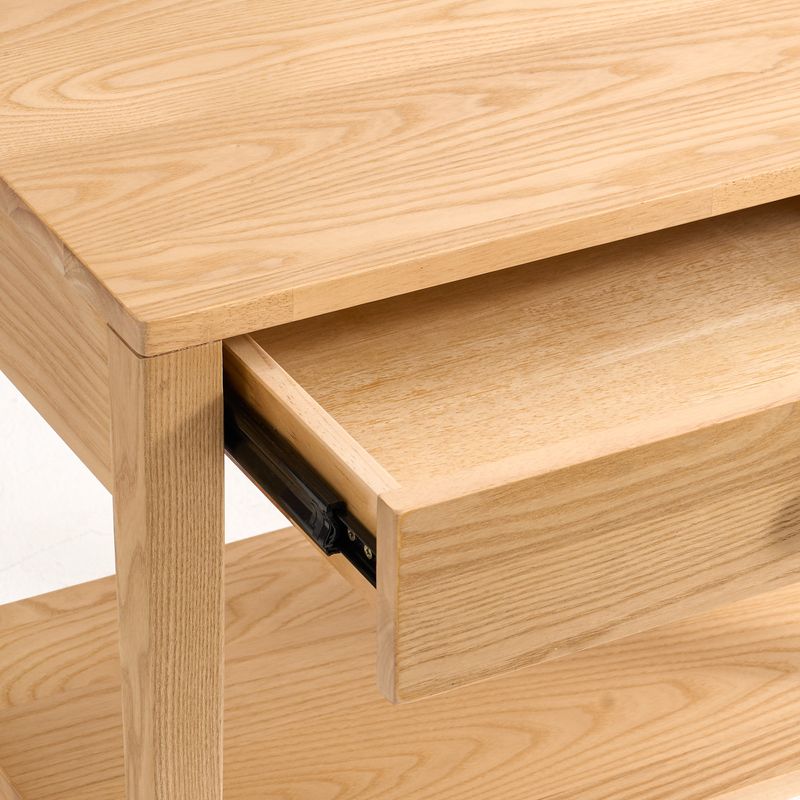 Clean two-tier design with a handy drawer and open shelf, crafted in a blend of light-toned ash and rubberwood