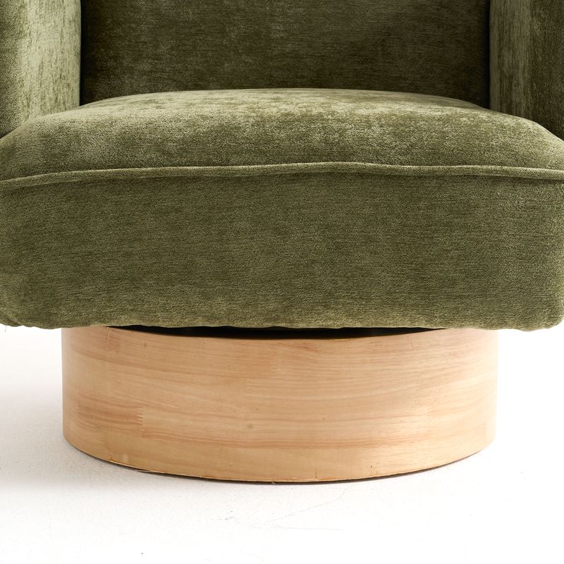 A bucket-shaped base carved from rubberwood for a swivel that’s always steady.