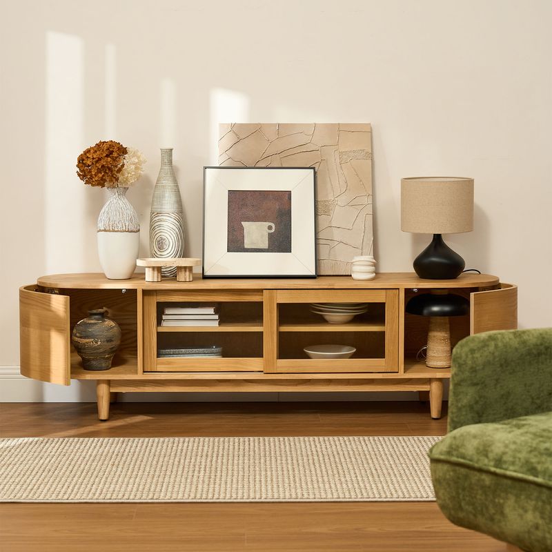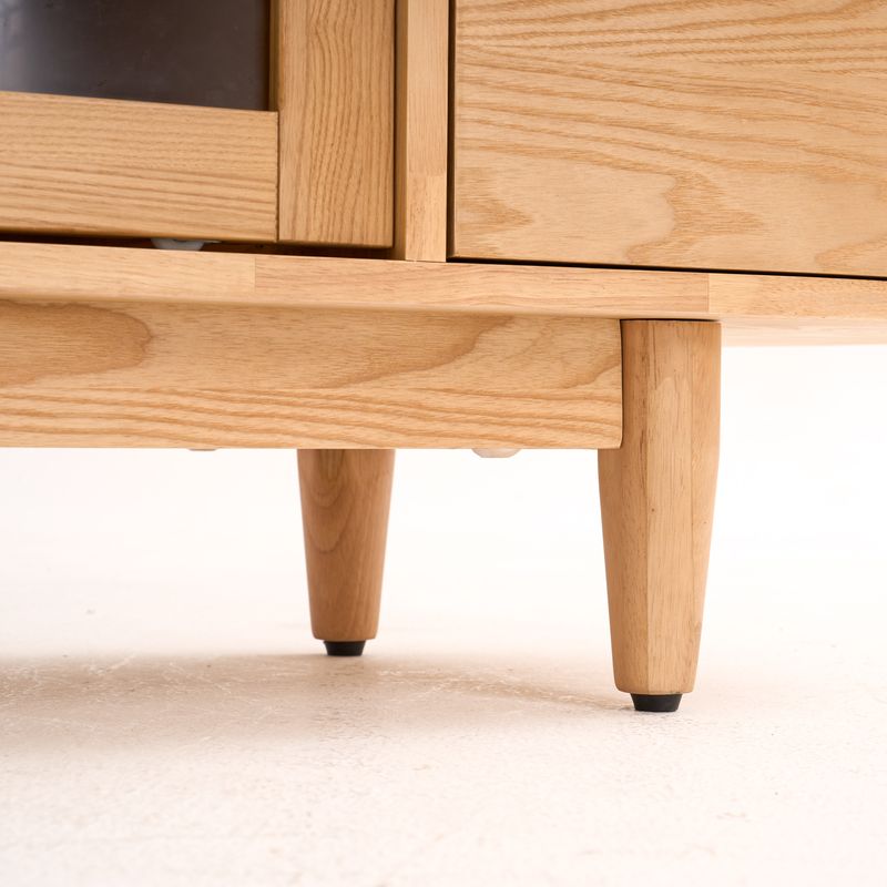 Built with plywood, rubberwood, and ash veneer, and secured with safe sliding glass doorsWe responsibly source our ashwood from sustainably managed forestsCPSIA-certified water-based finish & EPA P2 Certified, delivering a safer, eco-conscious home for your family and our planetEvery piece of natural wood tells its own story, with unique color and texture, no two are alikeEdge-free design with organic wood texture, offering visual warmth and tactile safetyA versatile shelf with open and enclosed space. Features soft-close doors on both sides for quiet, effortless access that complements your serene livingTwo discreet cable ports elegantly route cords, so you can say goodbye to messy wiresSome assembly required (approximately 15 minutes)