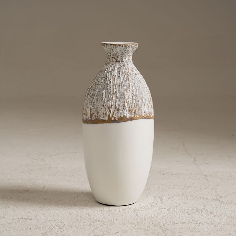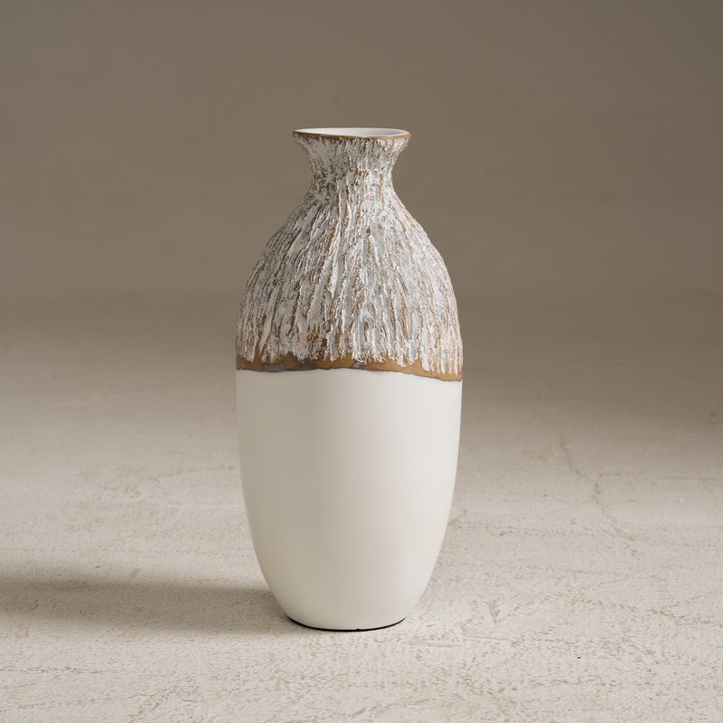 Crafted from eco-conscious unsaturated resin – a high-purity material renowned for its low environmental footprint Every piece undergoes a six-stage creation process: mold casting, primary curing, hand-sanding, secondary sealing, hand detailing, and final waxing—each stage overseen by a single artisan to ensure continuity of touchFeaturing hand-painted flowing lines, each vase is elegantly unique Filled at the base with sand for stability, it stands firmly on any surfaceAt 14 inches tall, it occupies the space of a refined centerpiece, ideal for low table displays in living rooms, dining consoles, or entryway benchesPerfect for compact arrangements of ranunculus and eucalyptus, or a minimalist trio of dried branches, this vase transforms fleeting botanicals into composed moments of still life