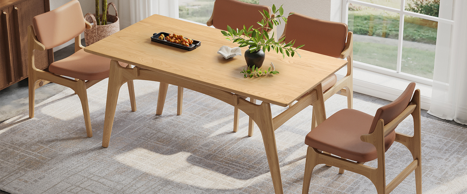 Meet the Pontana table—your home's new gathering spot. Crafted from solid wood with an open-frame design that keeps spaces feeling airy. Gently rounded edges and organic curves keep family time safe, while 40 mm thick legs offer steadfast support. Perfect for morning coffees and holiday feasts alike.