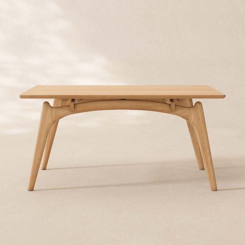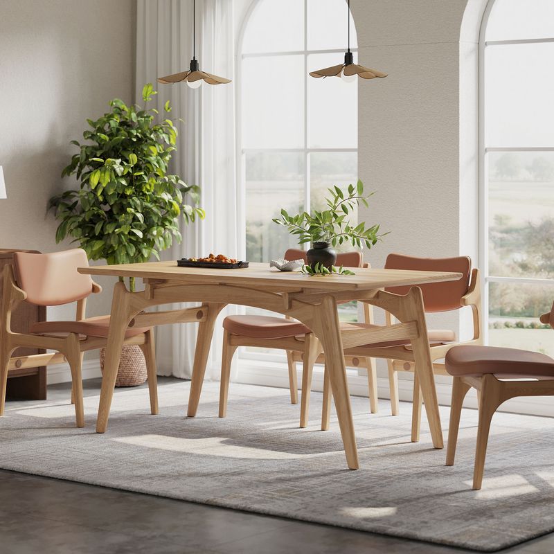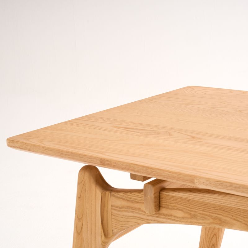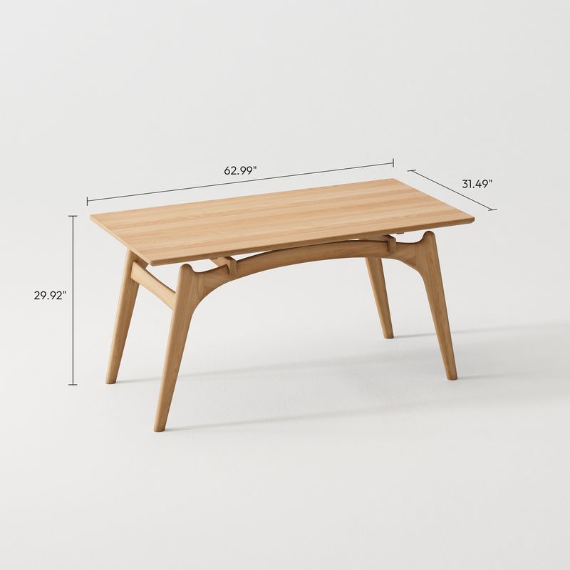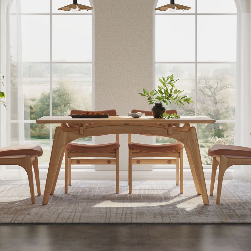 Crafted of rubberwood with ash veneers, The table legs are crafted from Japanese cleyera wood.The rubberwood used in this product is sustainably sourced from trees that no longer produce latex.CPSIA-certified water-based finish, safe for family well-beingEvery piece of natural wood tells its own story, with unique color and texture, no two are alike.Organic curves and rounded edges—thoughtfully designed to prevent bumps and bruises.A 63” tabletop fits 4–6 people with ease—perfect for everyday meals and festive gatherings alike.Some assembly required (approximately 20 minutes)
