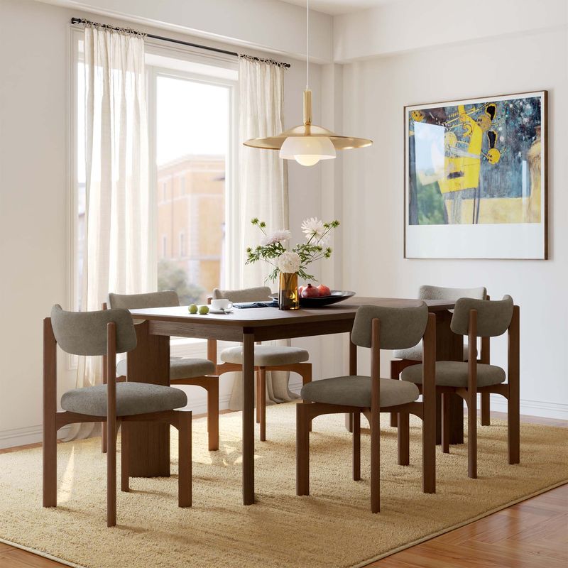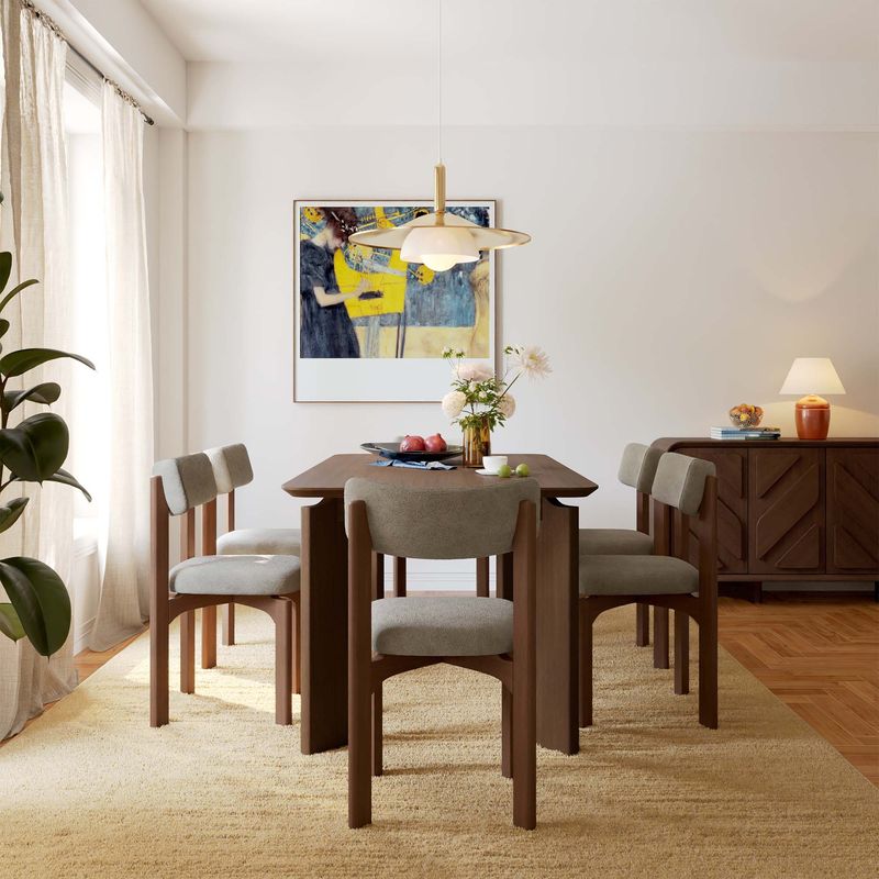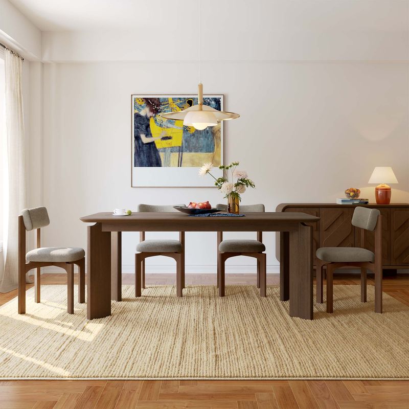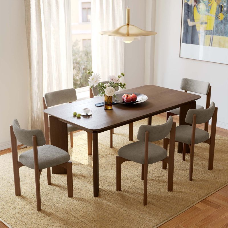 *Crafted of rubber wood with rubber wood veneers.The rubber wood used in this product is sustainably sourced from trees that no longer produce latex.CPSIA-certified water-based finish, safe for family well-beingEvery piece of natural wood tells its own story, with unique color and texture, no two are alike.A 70.8” tabletop comfortably fits 6–8, perfect for intimate dining moments.Some assembly required (approximately 20 minutes)